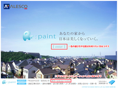 サイトを開きます。色の選び方や注意点を知りたい方は、中央の「enter」をクリックします。すぐにカラーシミュレーションを始めたい方は、中央下にある「カラーシミュレーション」を選択します。