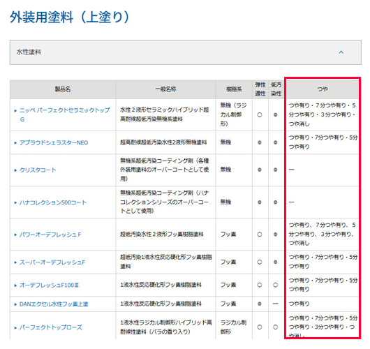 例:日本ペイント外装用塗料(上塗り)ページ