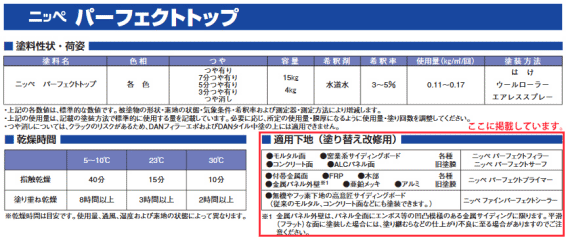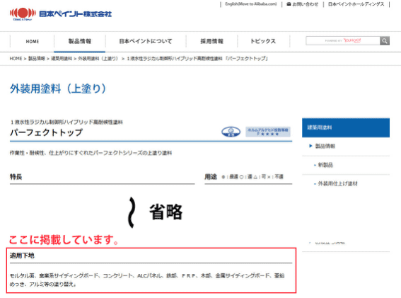 例:パーフェクトトップ(日本ペイント)のページ