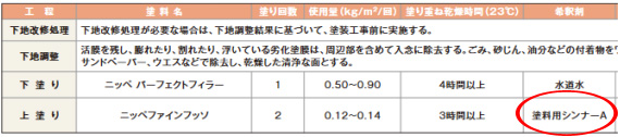 | 混合物 | 主材+希釈剤(水orシンナー) | 主材+硬化剤+希釈剤(水orシンナー) |